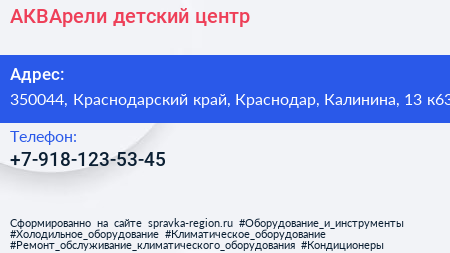 АКВАрели, детский центр по адресу 350044, Краснодарский край, Краснодар, Калинина, 13 к63 в дальнейшем Организация, размещена в следующих категориях: