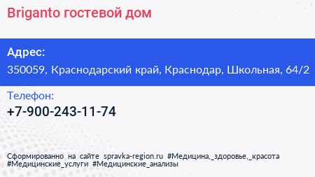 Briganto, гостевой дом по адресу 350059, Краснодарский край, Краснодар, Школьная, 64/2 в дальнейшем Организация, размещена в следующих категориях: