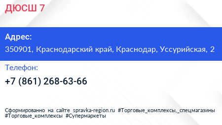 ДЮСШ №7 по адресу 350901, Краснодарский край, Краснодар, Уссурийская, 2 в дальнейшем Организация, размещена в следующих категориях: