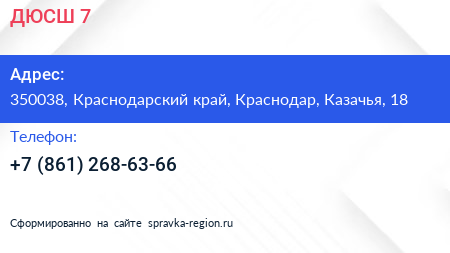 ДЮСШ №7 по адресу 350038, Краснодарский край, Краснодар, Казачья, 18 в дальнейшем Организация, размещена в следующих категориях: