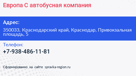 Европа-С, автобусная компания по адресу 350033, Краснодарский край, Краснодар, Привокзальная площадь, 5 в дальнейшем Организация, размещена в следующих категориях: