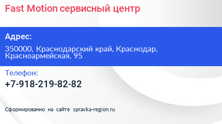 Fast Motion, сервисный центр по адресу 350000, Краснодарский край, Краснодар, Красноармейская, 95 в дальнейшем Организация, размещена в следующих категориях: