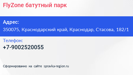 FlyZone, батутный парк по адресу 350075, Краснодарский край, Краснодар, Стасова, 182/1 в дальнейшем Организация, размещена в следующих категориях: