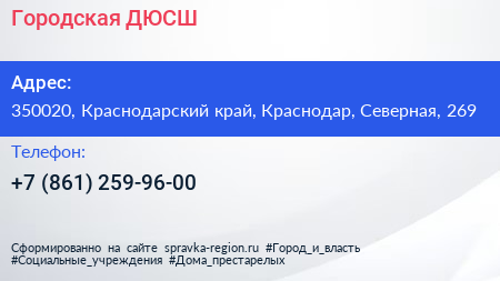 Городская ДЮСШ по адресу 350020, Краснодарский край, Краснодар, Северная, 269 в дальнейшем Организация, размещена в следующих категориях: