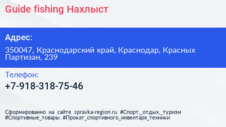 Guide fishing. Нахлыст по адресу 350047, Краснодарский край, Краснодар, Красных Партизан, 239 в дальнейшем Организация, размещена в следующих категориях: