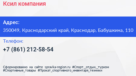 Ксил, компания по адресу 350049, Краснодарский край, Краснодар, Бабушкина, 110 в дальнейшем Организация, размещена в следующих категориях: