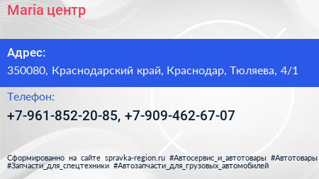 Maria, центр по адресу 350080, Краснодарский край, Краснодар, Тюляева, 4/1 в дальнейшем Организация, размещена в следующих категориях: