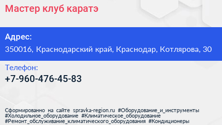 Мастер, клуб каратэ по адресу 350016, Краснодарский край, Краснодар, Котлярова, 30 в дальнейшем Организация, размещена в следующих категориях: