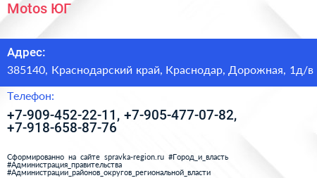Motos-ЮГ по адресу 385140, Краснодарский край, Краснодар, Дорожная, 1д/в в дальнейшем Организация, размещена в следующих категориях: