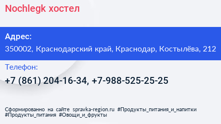 Nochlegk@, хостел по адресу 350002, Краснодарский край, Краснодар, Костылёва, 212 в дальнейшем Организация, размещена в следующих категориях: