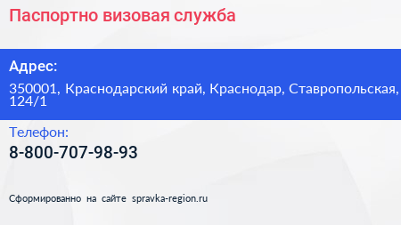 Паспортно-визовая служба по адресу 350001, Краснодарский край, Краснодар, Ставропольская, 124/1 в дальнейшем Организация, размещена в следующих категориях: