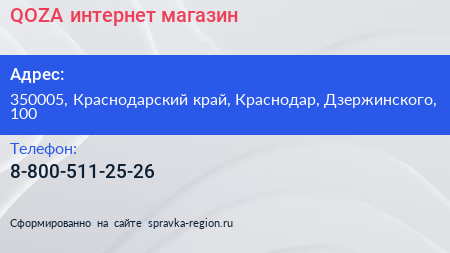 QOZA, интернет-магазин по адресу 350005, Краснодарский край, Краснодар, Дзержинского, 100 в дальнейшем Организация, размещена в следующих категориях: