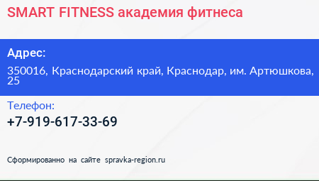 SMART FITNESS, академия фитнеса по адресу 350016, Краснодарский край, Краснодар, им. Артюшкова, 25 в дальнейшем Организация, размещена в следующих категориях: