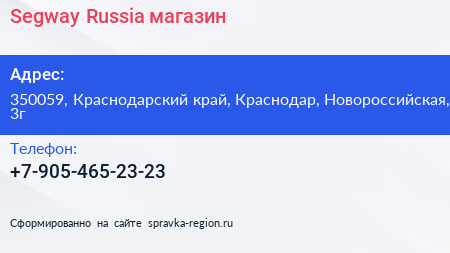 Segway Russia, магазин по адресу 350059, Краснодарский край, Краснодар, Новороссийская, 3г в дальнейшем Организация, размещена в следующих категориях: