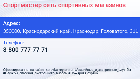 Спортмастер, сеть спортивных магазинов по адресу 350000, Краснодарский край, Краснодар, Головатого, 311 в дальнейшем Организация, размещена в следующих категориях: