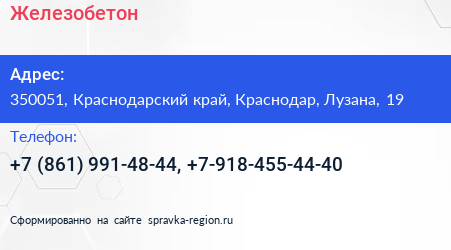 Железобетон по адресу 350051, Краснодарский край, Краснодар, Лузана, 19 в дальнейшем Организация, размещена в следующих категориях:
