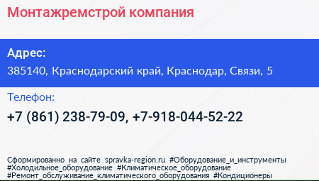 Монтажремстрой, компания по адресу 385140, Краснодарский край, Краснодар, Связи, 5 в дальнейшем Организация, размещена в следующих категориях:
