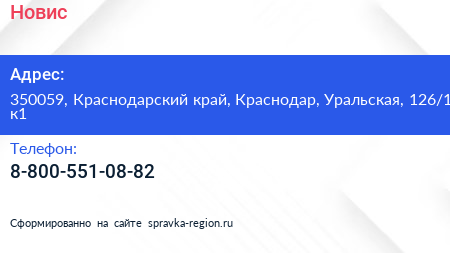 Новис по адресу 350059, Краснодарский край, Краснодар, Уральская, 126/1 к1 в дальнейшем Организация, размещена в следующих категориях: