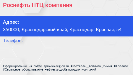 Роснефть-НТЦ, компания по адресу 350000, Краснодарский край, Краснодар, Красная, 54 в дальнейшем Организация, размещена в следующих категориях: