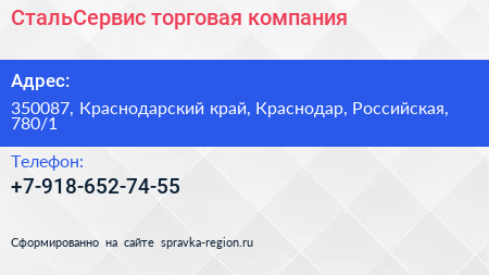 СтальСервис, торговая компания по адресу 350087, Краснодарский край, Краснодар, Российская, 780/1 в дальнейшем Организация, размещена в следующих категориях: