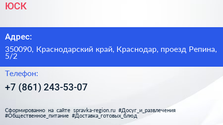 ЮСК по адресу 350090, Краснодарский край, Краснодар, проезд Репина, 5/2 в дальнейшем Организация, размещена в следующих категориях: