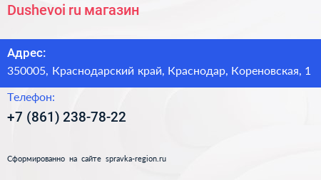 Dushevoi.ru, магазин по адресу 350005, Краснодарский край, Краснодар, Кореновская, 1 в дальнейшем Организация, размещена в следующих категориях: