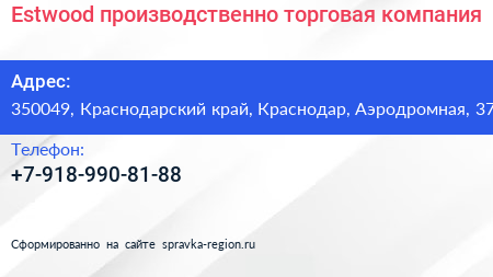 Estwood, производственно-торговая компания по адресу 350049, Краснодарский край, Краснодар, Аэродромная, 37 в дальнейшем Организация, размещена в следующих категориях: