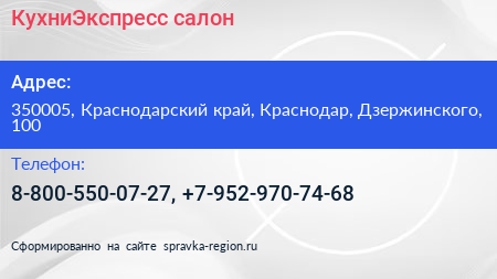 КухниЭкспресс, салон по адресу 350005, Краснодарский край, Краснодар, Дзержинского, 100 в дальнейшем Организация, размещена в следующих категориях: