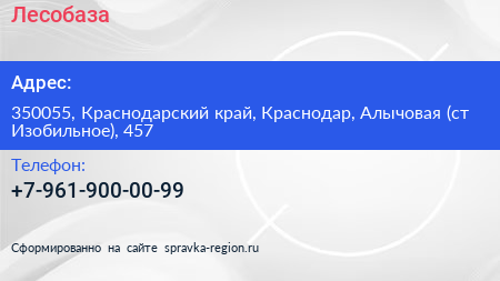 Лесобаза по адресу 350055, Краснодарский край, Краснодар, Алычовая (ст Изобильное), 457 в дальнейшем Организация, размещена в следующих категориях: