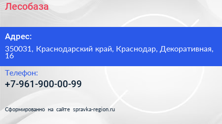 Лесобаза по адресу 350031, Краснодарский край, Краснодар, Декоративная, 16 в дальнейшем Организация, размещена в следующих категориях: