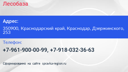 Лесобаза по адресу 350900, Краснодарский край, Краснодар, Дзержинского, 253 в дальнейшем Организация, размещена в следующих категориях: