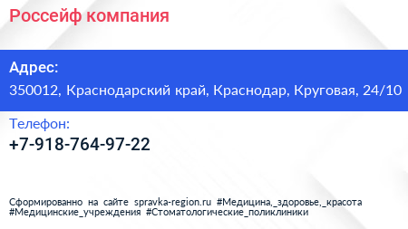 Россейф, компания по адресу 350012, Краснодарский край, Краснодар, Круговая, 24/10 в дальнейшем Организация, размещена в следующих категориях: