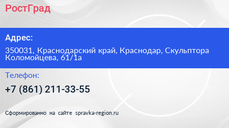 РостГрад по адресу 350031, Краснодарский край, Краснодар, Скульптора Коломойцева, 61/1а в дальнейшем Организация, размещена в следующих категориях: