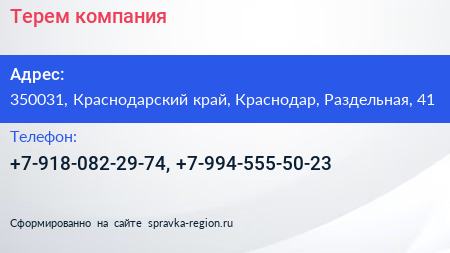 Терем, компания по адресу 350031, Краснодарский край, Краснодар, Раздельная, 41 в дальнейшем Организация, размещена в следующих категориях: