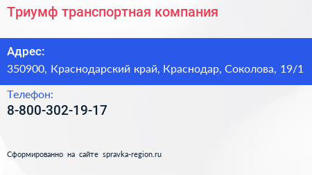 Триумф, транспортная компания по адресу 350900, Краснодарский край, Краснодар, Соколова, 19/1 в дальнейшем Организация, размещена в следующих категориях: