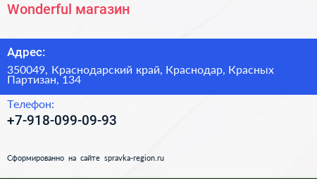 Wonderful, магазин по адресу 350049, Краснодарский край, Краснодар, Красных Партизан, 134 в дальнейшем Организация, размещена в следующих категориях: