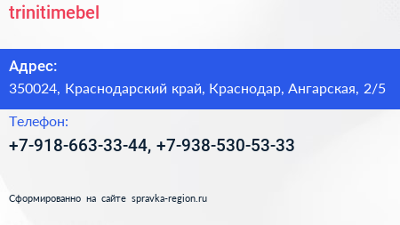 trinitimebel по адресу 350024, Краснодарский край, Краснодар, Ангарская, 2/5 в дальнейшем Организация, размещена в следующих категориях:
