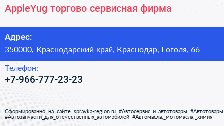 AppleYug, торгово-сервисная фирма по адресу 350000, Краснодарский край, Краснодар, Гоголя, 66 в дальнейшем Организация, размещена в следующих категориях: