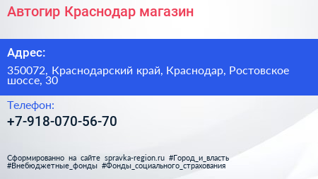 Автогир Краснодар, магазин по адресу 350072, Краснодарский край, Краснодар, Ростовское шоссе, 30 в дальнейшем Организация, размещена в следующих категориях: