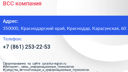 BCC, компания по адресу 350000, Краснодарский край, Краснодар, Карасунская, 60 в дальнейшем Организация, размещена в следующих категориях: