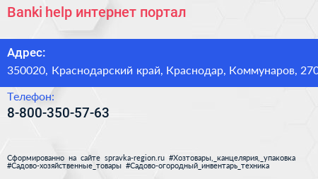Banki.help, интернет-портал по адресу 350020, Краснодарский край, Краснодар, Коммунаров, 270 в дальнейшем Организация, размещена в следующих категориях: