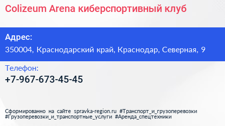 Colizeum Arena, киберспортивный клуб по адресу 350004, Краснодарский край, Краснодар, Северная, 9 в дальнейшем Организация, размещена в следующих категориях: