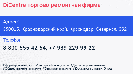 DiCentre, торгово-ремонтная фирма по адресу 350015, Краснодарский край, Краснодар, Северная, 392 в дальнейшем Организация, размещена в следующих категориях: