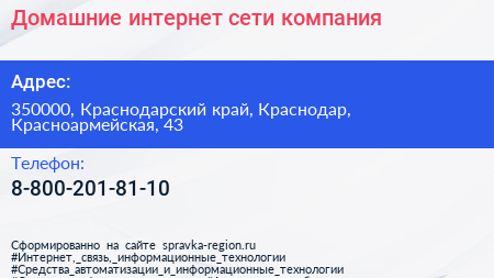 Домашние интернет-сети, компания по адресу 350000, Краснодарский край, Краснодар, Красноармейская, 43 в дальнейшем Организация, размещена в следующих категориях: