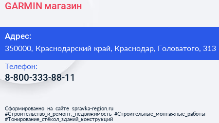 GARMIN, магазин по адресу 350000, Краснодарский край, Краснодар, Головатого, 313 в дальнейшем Организация, размещена в следующих категориях:
