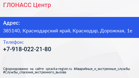 ГЛОНАСС-Центр по адресу 385140, Краснодарский край, Краснодар, Дорожная, 1е в дальнейшем Организация, размещена в следующих категориях: