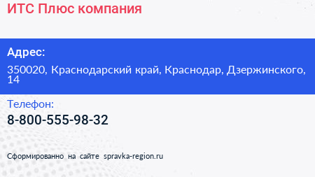 ИТС Плюс, компания по адресу 350020, Краснодарский край, Краснодар, Дзержинского, 14 в дальнейшем Организация, размещена в следующих категориях:
