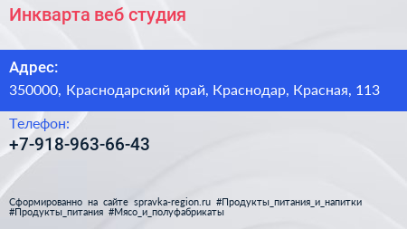 Инкварта, веб-студия по адресу 350000, Краснодарский край, Краснодар, Красная, 113 в дальнейшем Организация, размещена в следующих категориях:
