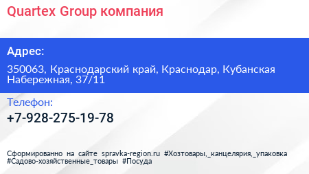 Quartex Group, компания по адресу 350063, Краснодарский край, Краснодар, Кубанская Набережная, 37/11 в дальнейшем Организация, размещена в следующих категориях: