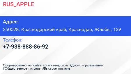 #RUS_APPLE по адресу 350028, Краснодарский край, Краснодар, Жлобы, 139 в дальнейшем Организация, размещена в следующих категориях: